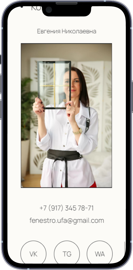 После личной беседы и первоначального представления моего проекта поняла, что Вы меня услышали и сможете реализовать мои мысли. Все этапы меня абсолютно устроили. Что особенно понравилось в работе, так это полученный результат. Я получила именно то, что хотела — сайт моей мечты. Материализовалось то, чем я хотела поделиться со своими потенциальными Клиентами.